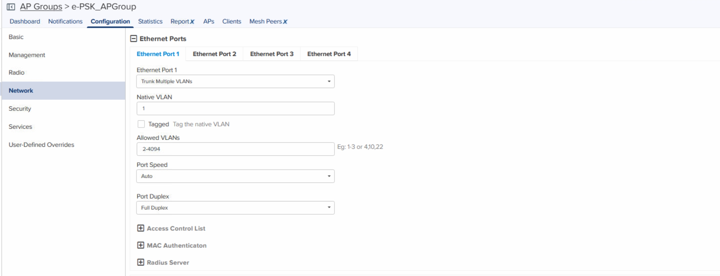 Allowed VLANS: 2-4094 (or set to your specific infrastructure)
