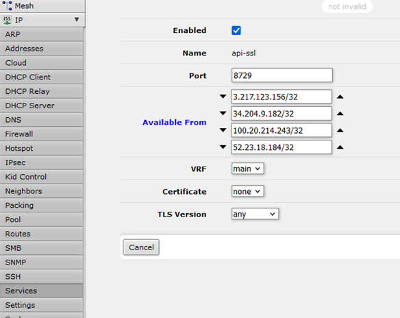 All configuration steps detailed assume the Mikrotik Router has an accessible IP address and configuration steps are accomplished via WebFig user interface.